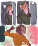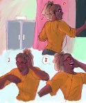 So I saw the highschool staff au, credit to pigdemonart.tumblr.com for the character designs and inspiration and I just had to throw my boombox hcs in here where the smelly janitor has a crush on the hot band teacher