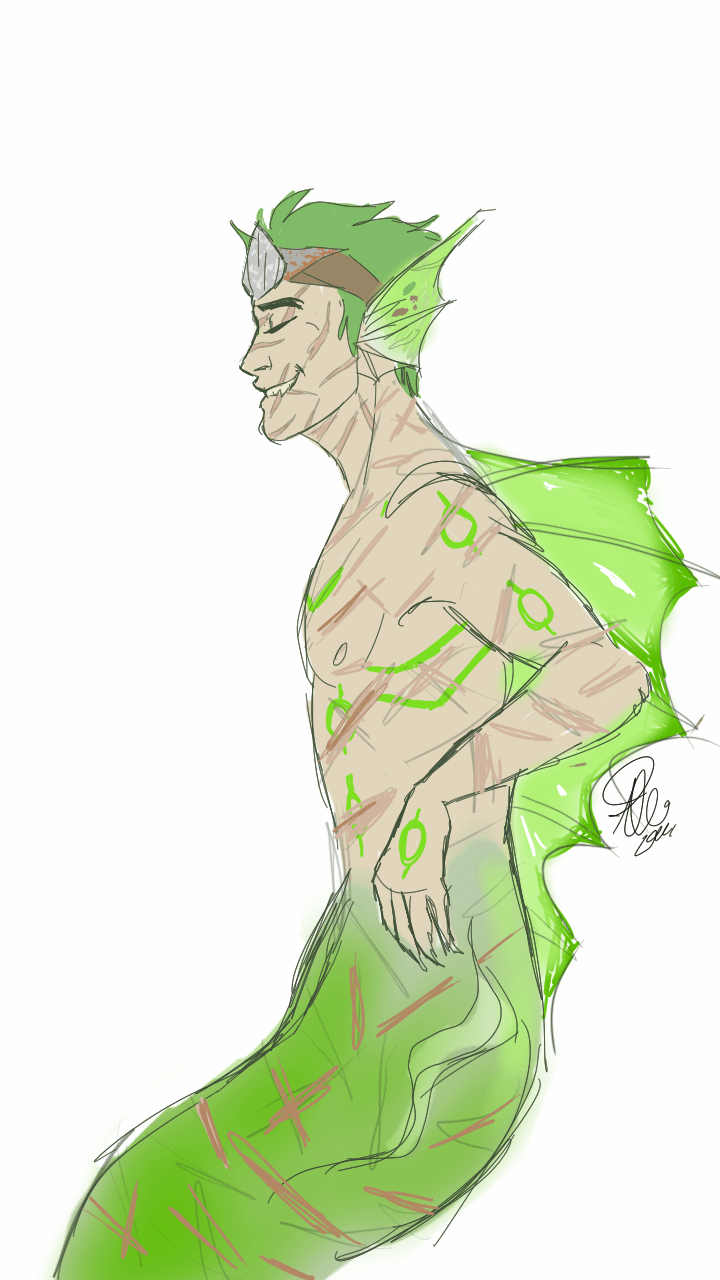 So I drew a mer!Genji for you both out of inspiration because I love the au so much… (Sorry it’s sketchy, I did it with my phone and a stylus)