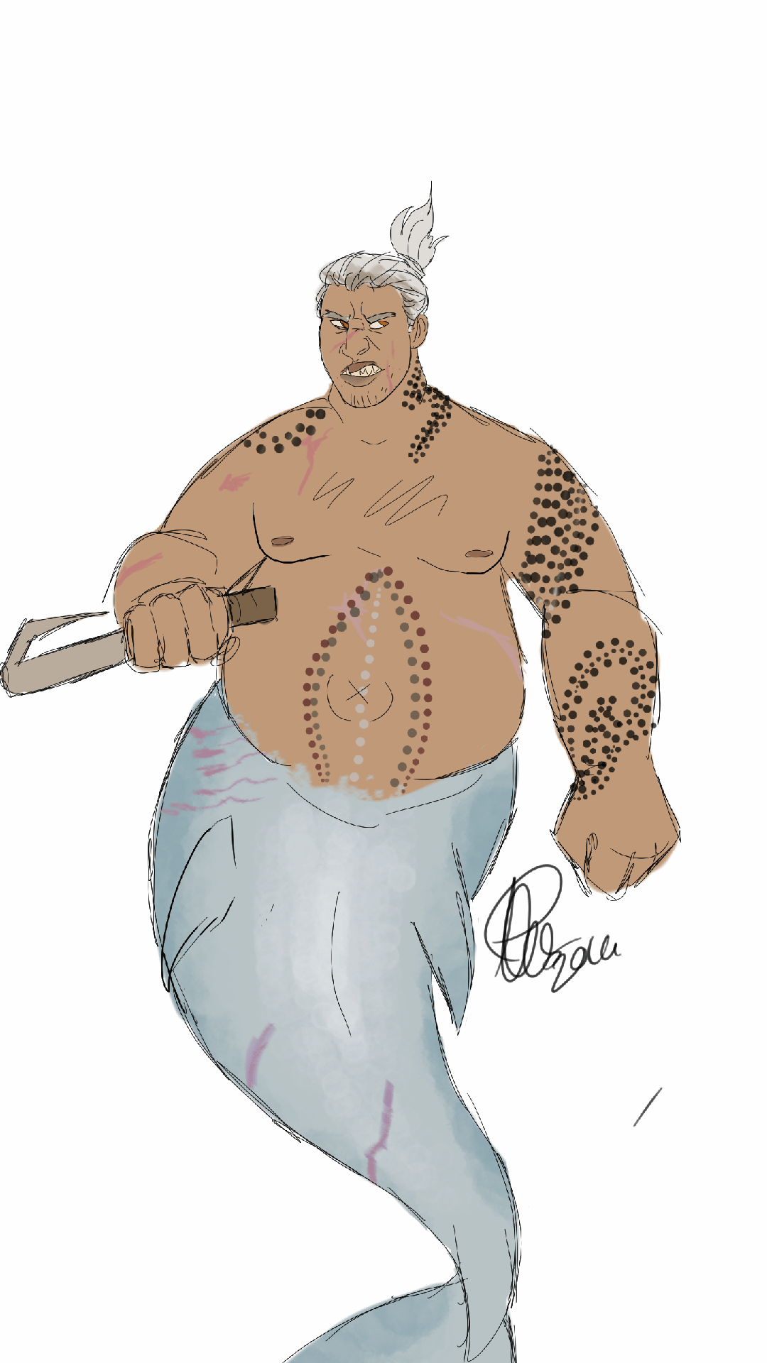 So… adding to the mer!AU I drew a big strong shark Roadhog bc …. :>
