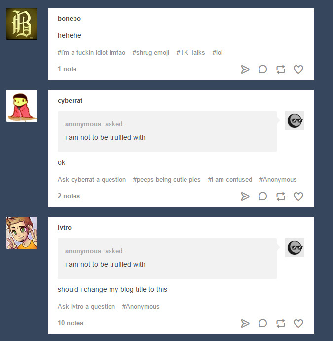 cyberratting Allgemein 8. February 201712. December 2018 1 Minute bonebo: slavetomyheadcanon: I can’t help but wonder…. WHAT IS THIS ……. TEEEEEEEEE KAAAAAAAAAAAYYYYYYYYYY Teilen mit: Share on X (Opens in new window) X Share on Facebook (Opens in new window) Facebook Like Loading... Related Published by cyberratting View all posts by cyberratting Published 8. February 201712. December 2018