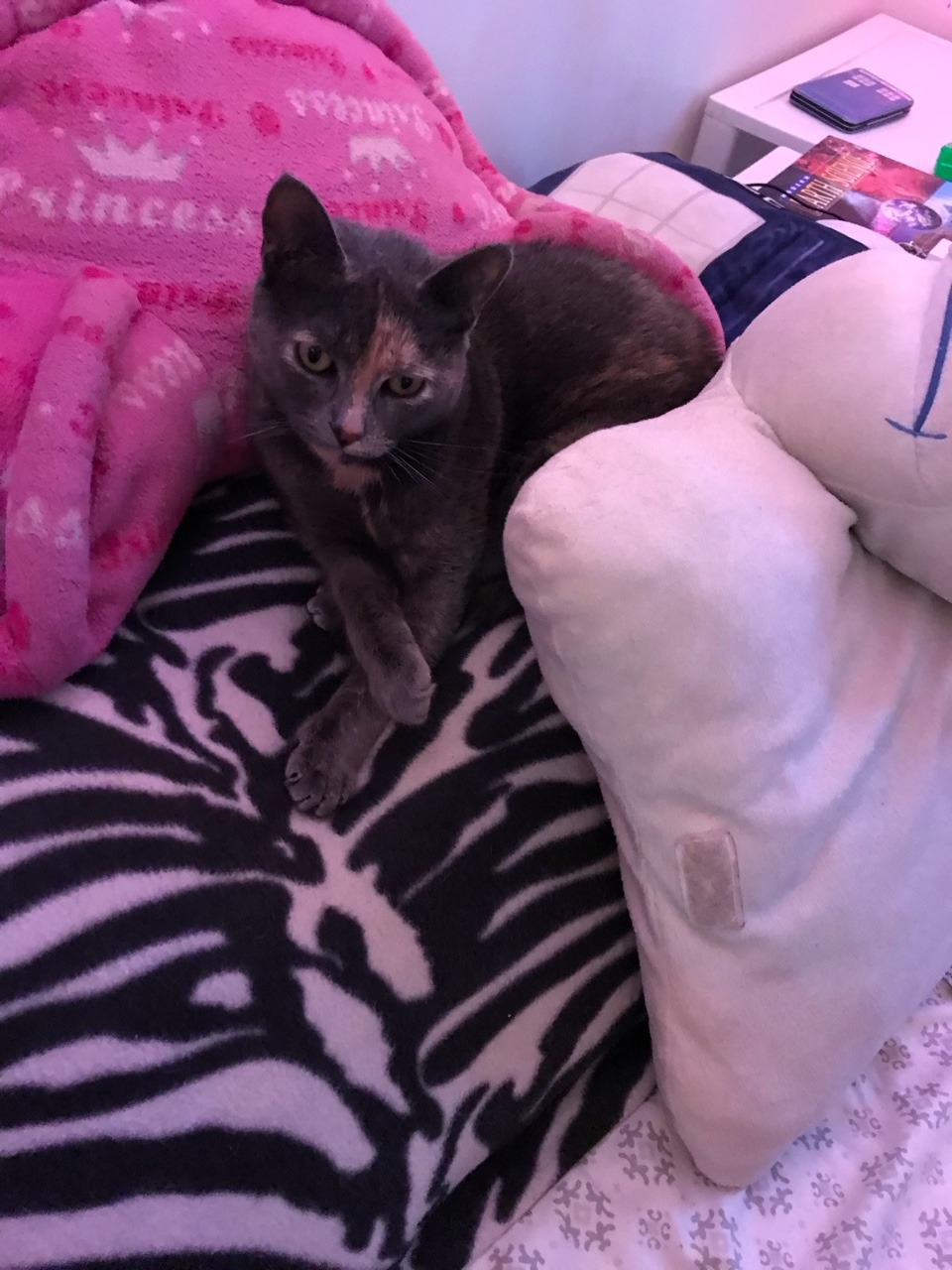 I saw people sending animals so I did one too! This is my oldest kitty Tiny. She likes my pillows a lot