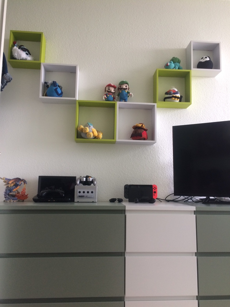 I got even more shelves and finally freed up my dressers from any clutter. I‘m drenched in sweat but I‘m happy with the results :3