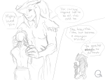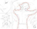 Link’s eyes widen, watching another Gerudo with a huge, wild head of bright red hair excuse herself from the general scuffle in the water, and for a second he does not know where to look first: his demise coming at him with a playful, sharp grin and outstretched hands intent on divesting him of his clothes – or at the Gerudo behind her that are decidedly no longer wrestling but softly kissing and touching.