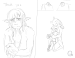 Tomol is laughing, clutching a struggling Link to her with a bear hug and rubbing her cheek against his blond hair. “You’re so cute, little vai,” she coos, and then, calling over her shoulder: “Sirofe! Come here! I need a little help with this one. She is spicy alright!”
