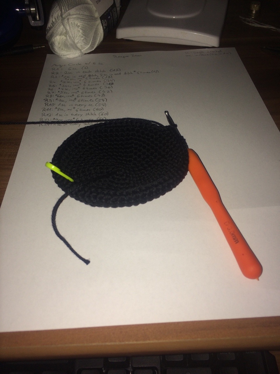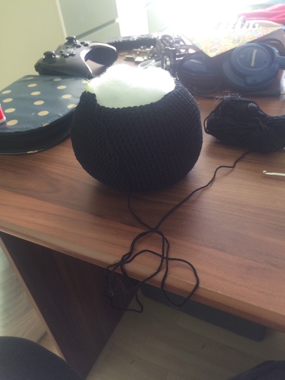 Had to revise a bit but now he’s got a definitive bottom so he won’t roll around like a ball. It’s hard to tell tho because of the dark color D: