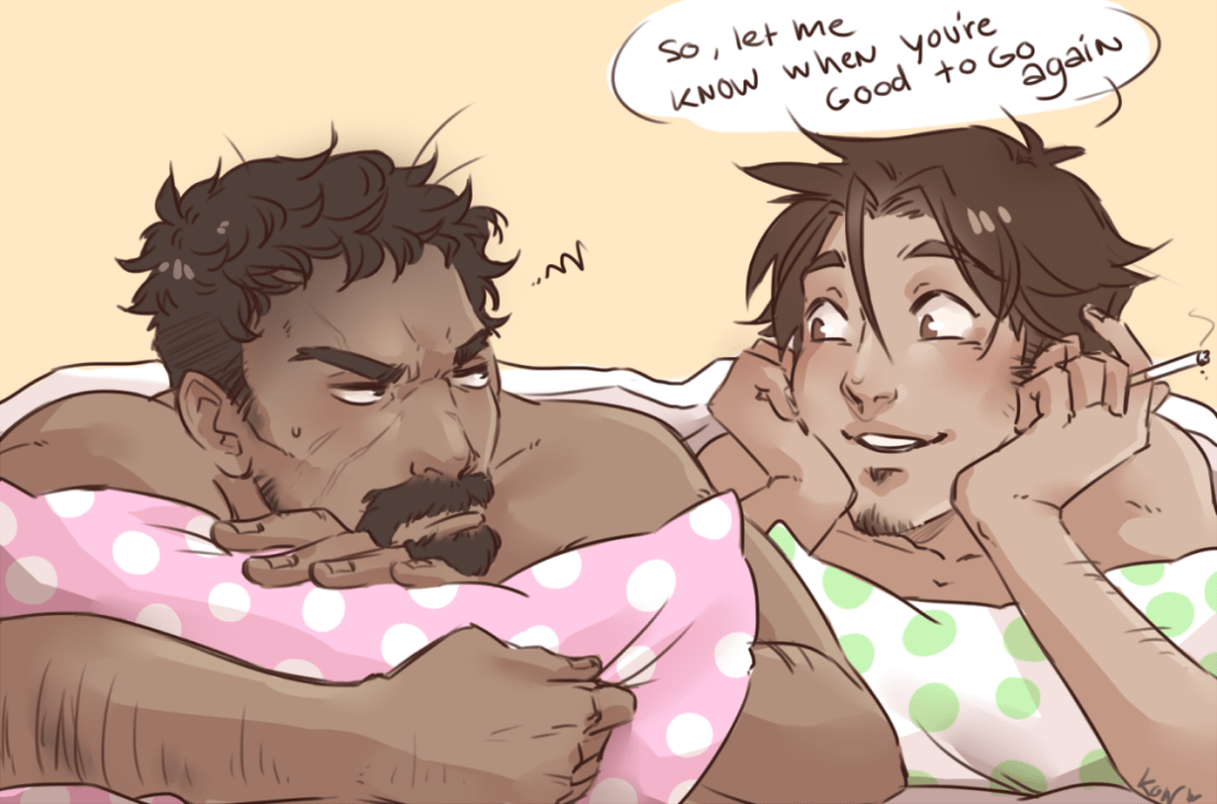 Some cow!Hanzos make McCree go HIGH NOOn A young moo And an older more jaded moo