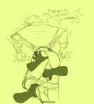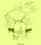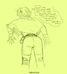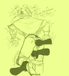 He towers over her, huge and forbidding, bleeding from a few shallow gashes, large gut constantly moving with his labored breaths, and all she can do is stare up at him like a little kid, mouth agape and cunt growing warm and tingly, swelling to puffy sensitivity.