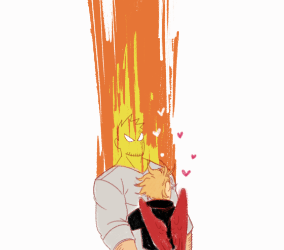 The flames around his face spring to life and fizzle out just as quickly. His whole body sputters, his Quirk not obeying him as his first instinct – to get on his knees and lap at the fingers of the young Alpha, wet with salty pre-cum – wars with his other impulse to pop Hawks’ head between his large palms like a goddamn grape.