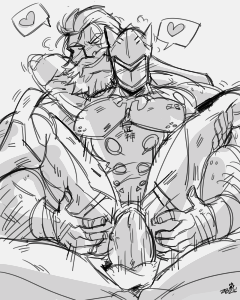 When Genji pops off, it’s accompanied with a lewd, slurping pop. His hand keeps moving – slowly jerking the older man, keeping his cock upright so he could still rub his cheek against it and let Reinhardt feel the dual textures of scarred cheek going over to synthetic jaw.