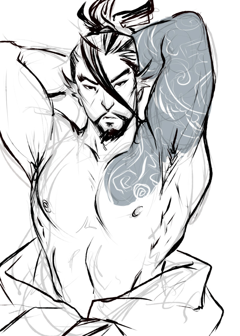 Here’s that mer hanzo as a standalone because I’m proud of this scribble