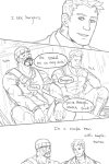 “I fucking stink,” Gabriel corrects, but Jesse knows there’s no real venom in his bite, only a shyness that he hides with a prickly attitude. Jesse sighs fondly, running his hands up the muscles of Gabriel’s sides to feel the sweat against his skin.