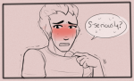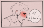 “…Wha?” McCree’s eyes look feverish, his cheeks a brick red. He’s chuffing like an old engine and as they both stare, his short cock flexes out another string of pre-cum which slides down the stout, fat shaft and mattes his pubes.