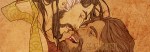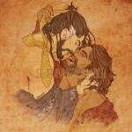 “You liking what yer seein’, boys?” he suddenly barks, watching the man flinch minimally before him. When he pulls the curtain of black, thin hair to the side so he can see his face, his fingers brush the hot skin of his cheek. His ears are cherry red and radiating an incredible heat when his men’s voices call back in a cacophony of praise and well-intentioned insults.