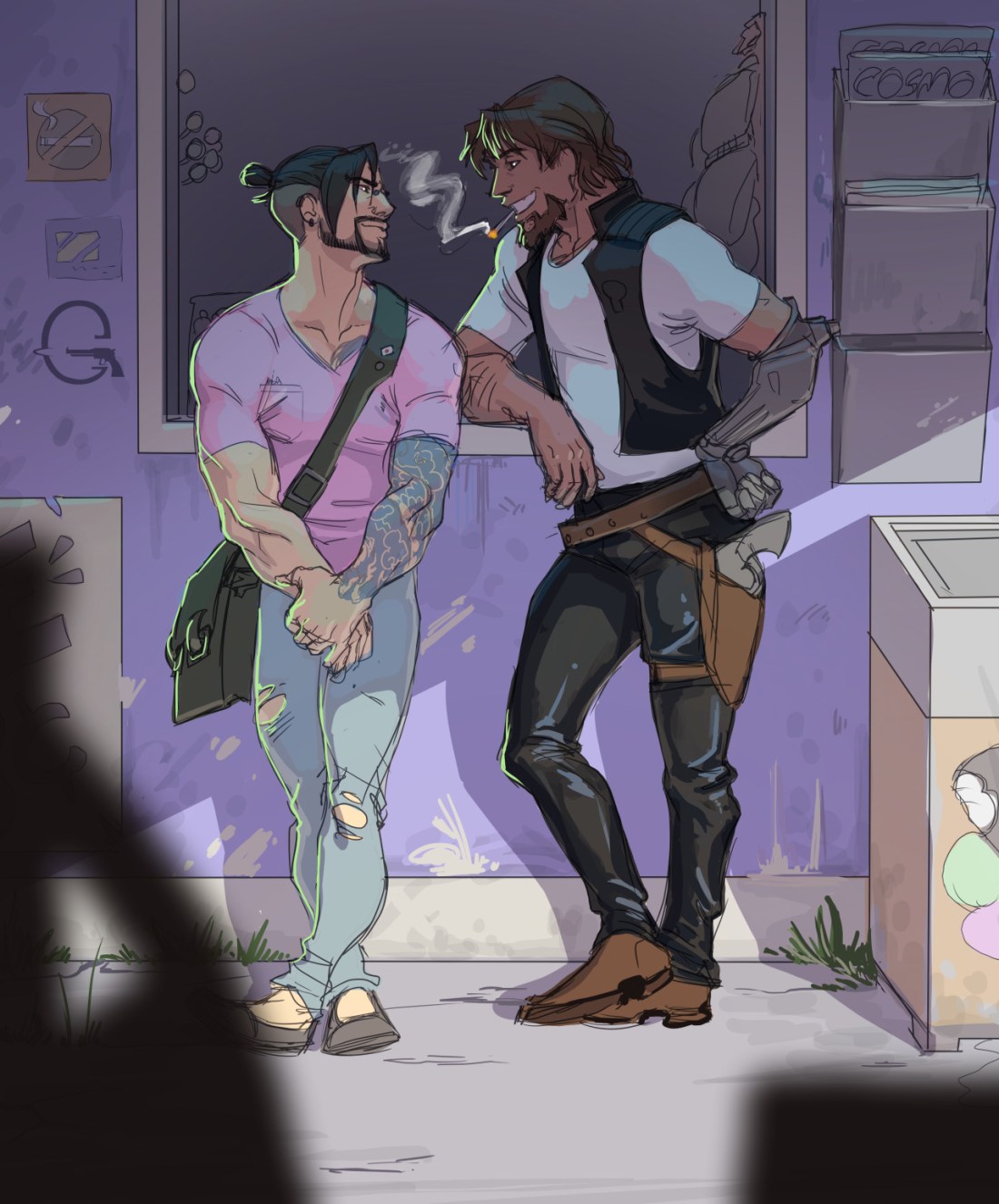 Hanzo grunts and shakes his head once but Jesse is not being dissuaded and he doesn’t care enough to make him let go.