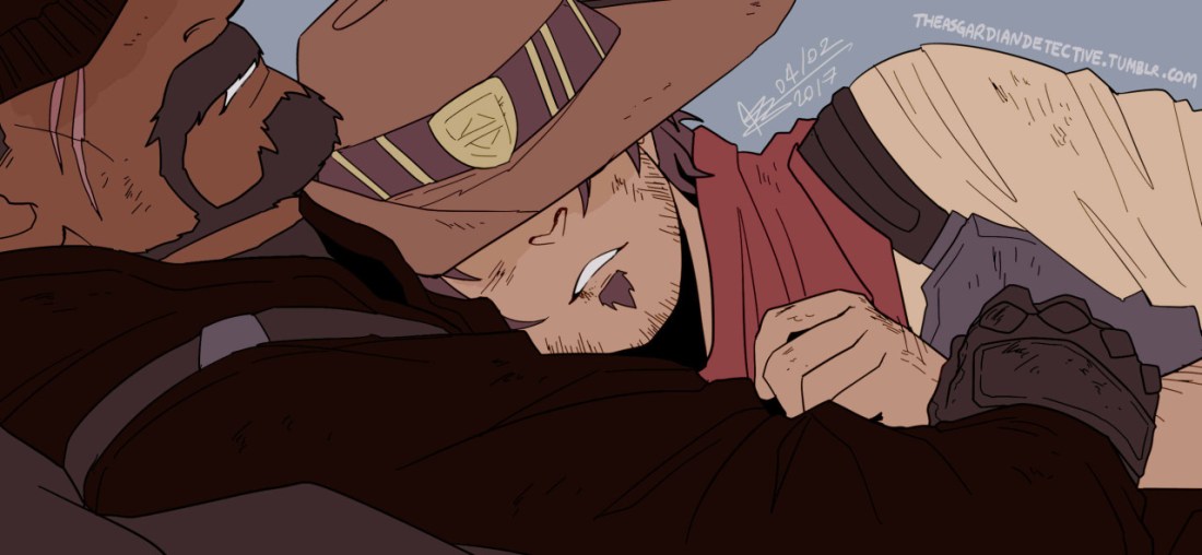 So I feel like McCree made a dumb comment/snapped/sniffed a lil too long for comfort in Gabriel’s direction, and Gabriel snaps and wrestles him down.