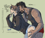 I’m not into beating up but my first thought was Gabe goddamn wrestling the kid down after McCree growled at him for the umpteenth time; and Gabriel is a very patient Alpha; very secure in his status and everything, but McCree gets under his skin, and the kid has the habit of starting shit at the worst of times: like when they’re all sweaty and fragrant from training, and everybody feels like they’re top stud anyway.