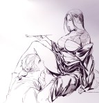 “Come here…” he says, and then tags on as an afterthought: “Brother…” and Hanzo shudders bodily but does crawl closer: knee waking between Genji’s knees. Looking up at him with a sly kind of hunger that makes Genji smirk beneath his visor.