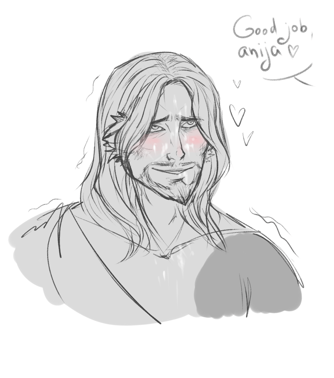 He strokes along the line of his neatly trimmed beard, thumb coming up to trace the shape of his wide mouth, the corners pulled down as ever in a severe, haughty expression that comes natural to his brother’s disposition; a boon just as much as it is a curse.