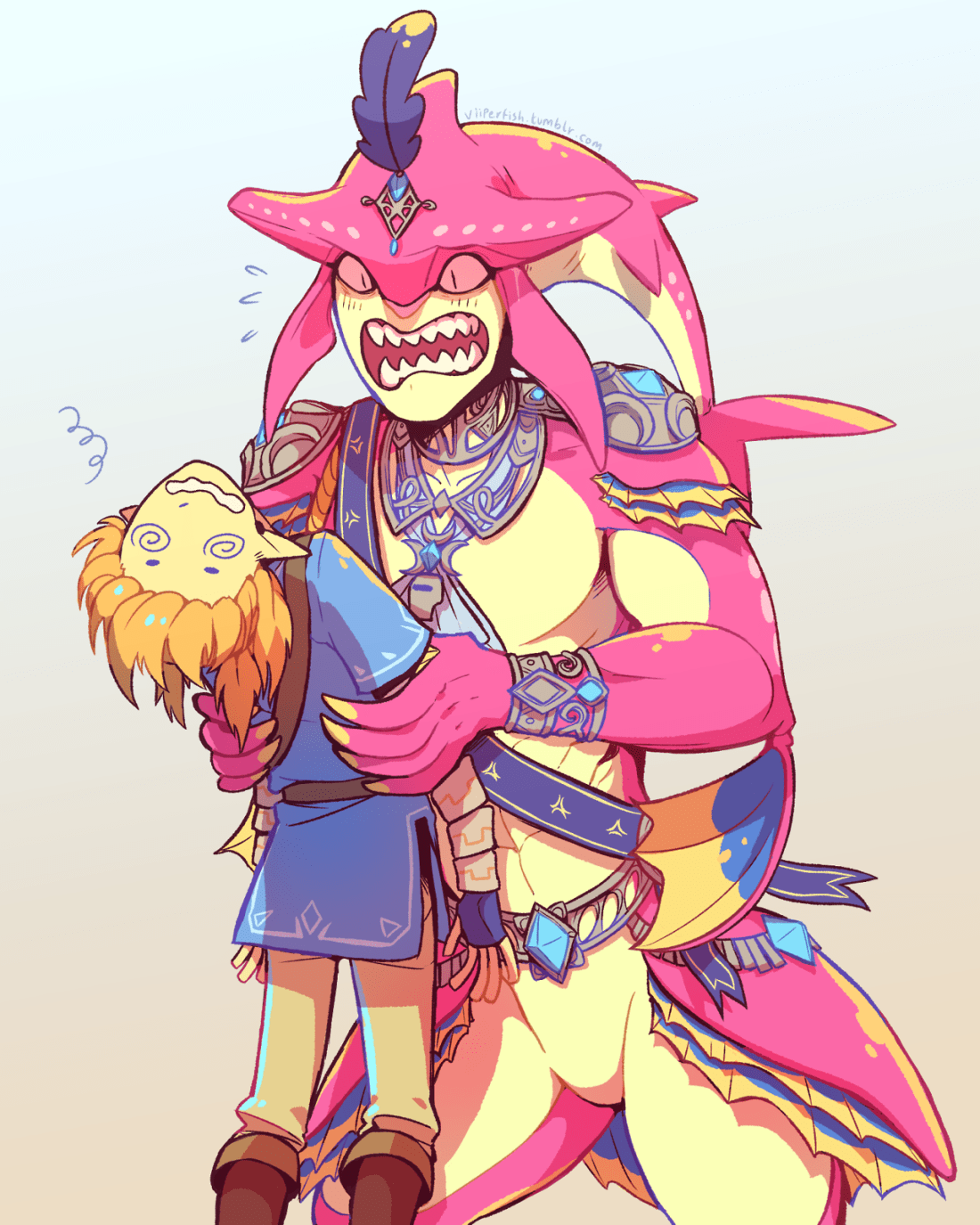 but then Link’s clever little Hylian fingers are there, playing with his cloaca, rounding the tender opening again and again before slipping inside and testing how slimy wet and excited Sidon was for him.
