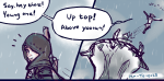 Link seems to think about it, the hand stroking the shaft of the spear stilling before he glances backwards over his shoulder, pretty blue eyes surprisingly sly.
