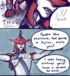 “M-Master Link!” Sidon exclaims, voice not quite his own, hands flying down to grab at anything and everything that he can reach of the little Hylian – which turns out to be his thigh and his hair.