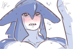 Link’s eyes are mostly closed, their unnervingly bright blue practically shining in cat-like satisfaction as he glances up at the tall Zora Prince – then closes his soft, agile mouth across the little sensitive slit and sucks…