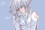 Link beams as he sees him, those expressive blue eyes squinting with his broad grin as he first waves back, and then comes jogging close. Sidon pushed back from the stony shore and lazily swims a few meters backwards, watching as the little Hylian starts shucking his clothes.
