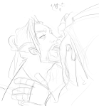Hanzo moans in reply, dropping his head back to bare the expanse of his throat. With his arms braced behind him and knees spread wide, he can take Jesse’s cock deeper into his body; but the tradeoff is that it forces him to display his body obscenely, chest and hips arched up like a lewd offering to a sex-crazed god named McCree. He glances down at himself and bites his lip, watches the way his cock bobs in the air, hard and arching up toward his belly and finally, finally, free.