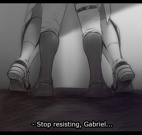 “Come,” he says again, the smile from his face and his voice, eyes stern. Gabriel sneers back, the look in his eyes feverish and hateful before something changes and he practically squirms on the spot – suddenly shy.