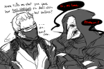 Anonymous said: “ “Come sit in my lap, pet.” with reaper and morrison and milky tiddies plssss uwu”