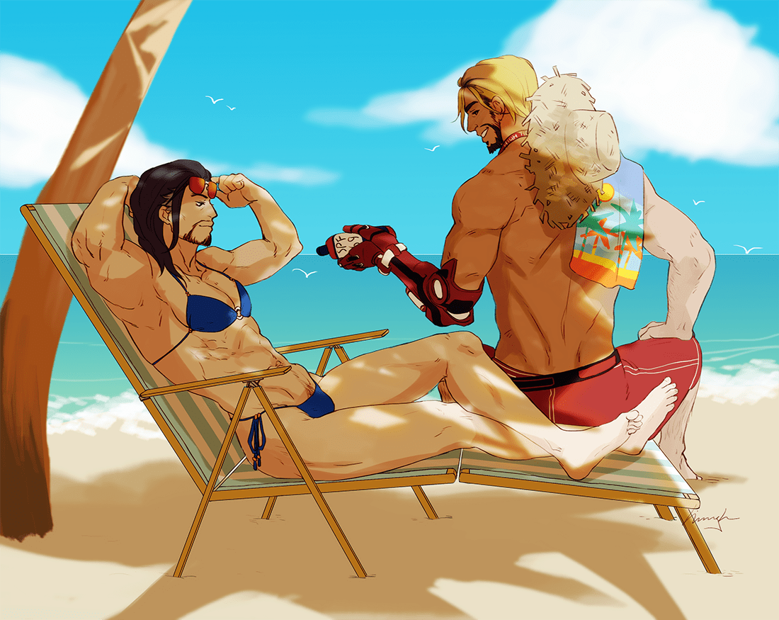 Shitty blond lifeguard mccree trying to pick up biniki beach babe™